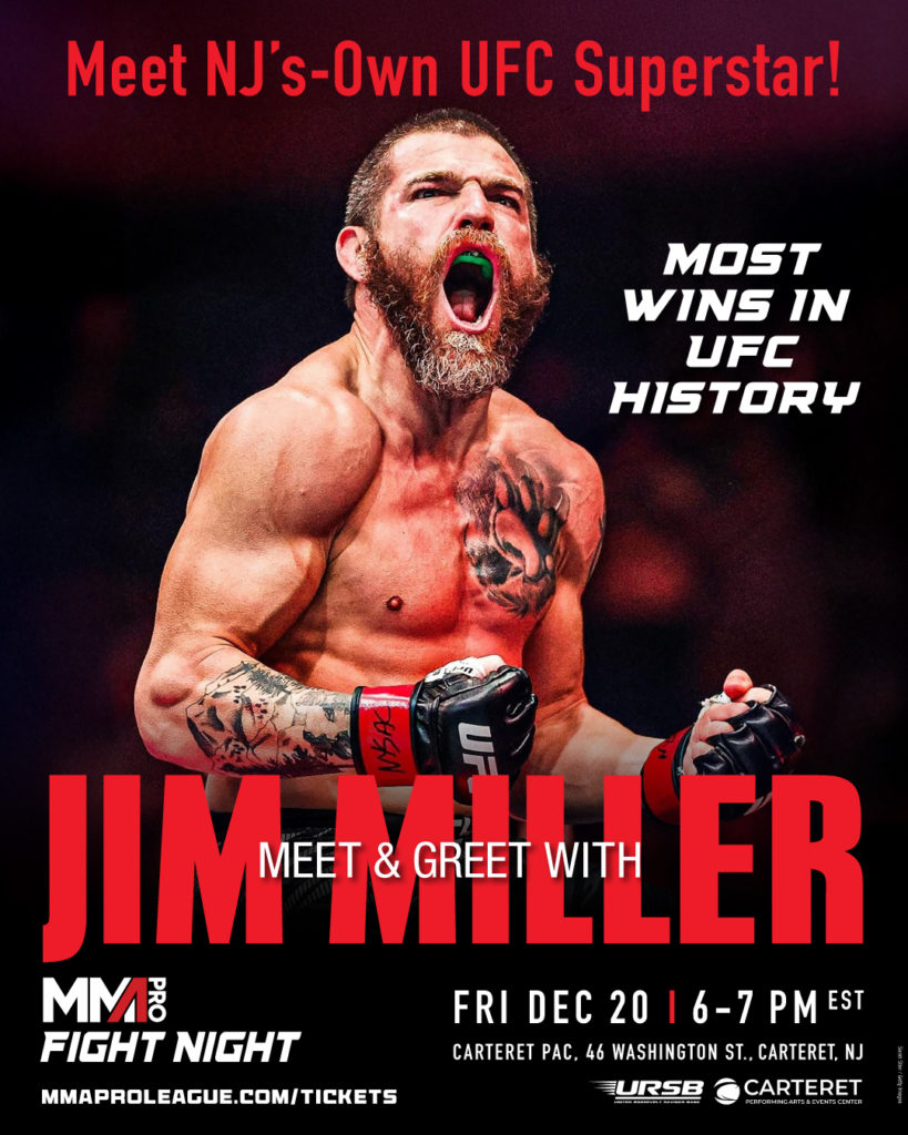 Ticket holders for the next MMA Pro League: NY vs NJ event will get an exclusive opportunity to meet NJ’s own UFC legend, Jim Miller! Snap a photo, grab an autograph, and connect with the fighter who holds the record for the most wins in UFC history. Don’t miss this chance to be part of history–get your tickets now!